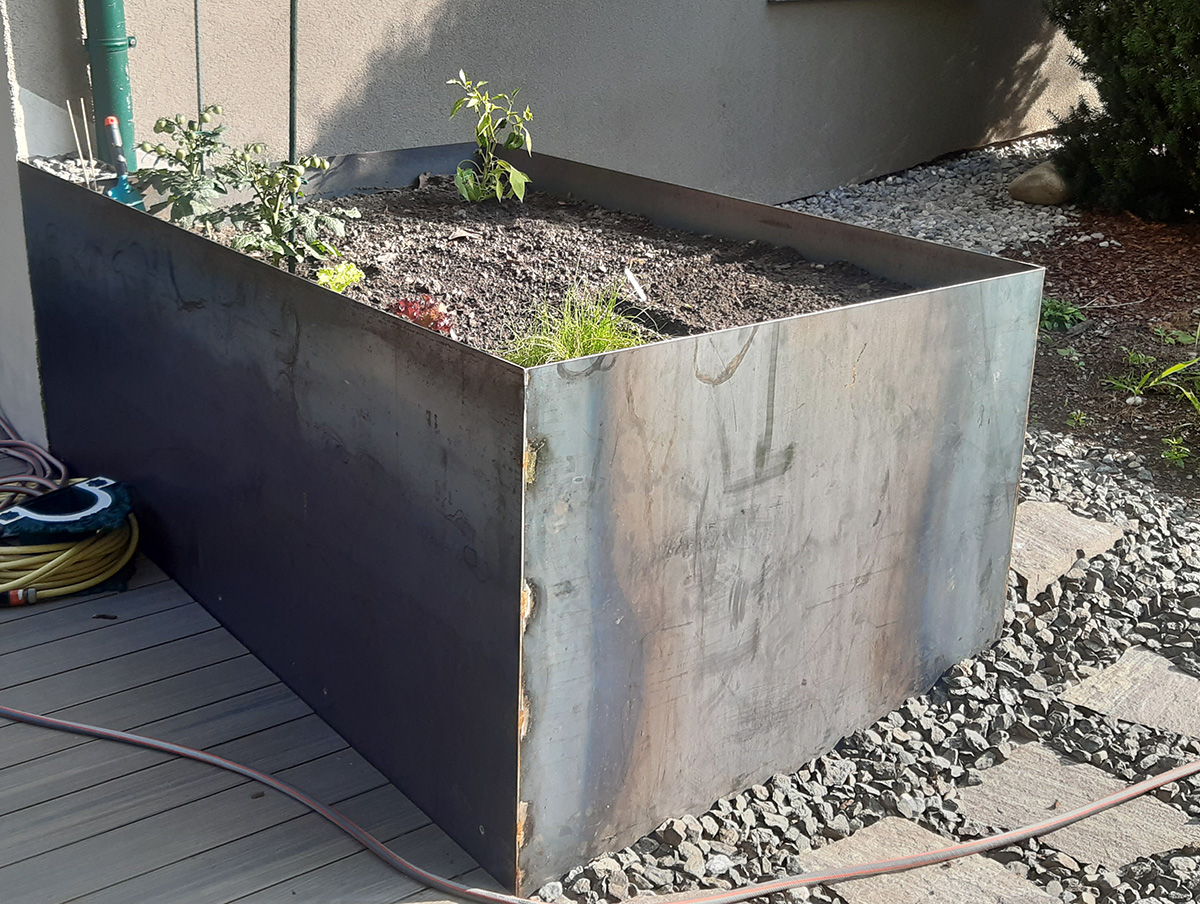 Hochbeete werden von uns mit 2-5 mm Stahlblech gefertigt – Auf Kundenwunsch könnte ein oberer Blechabschluss gekantet werden.